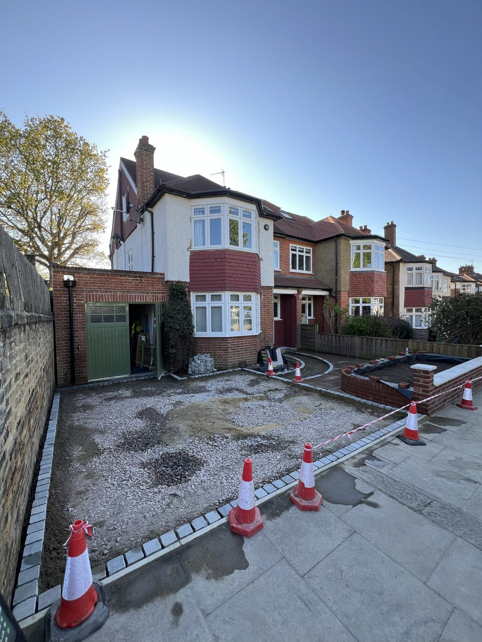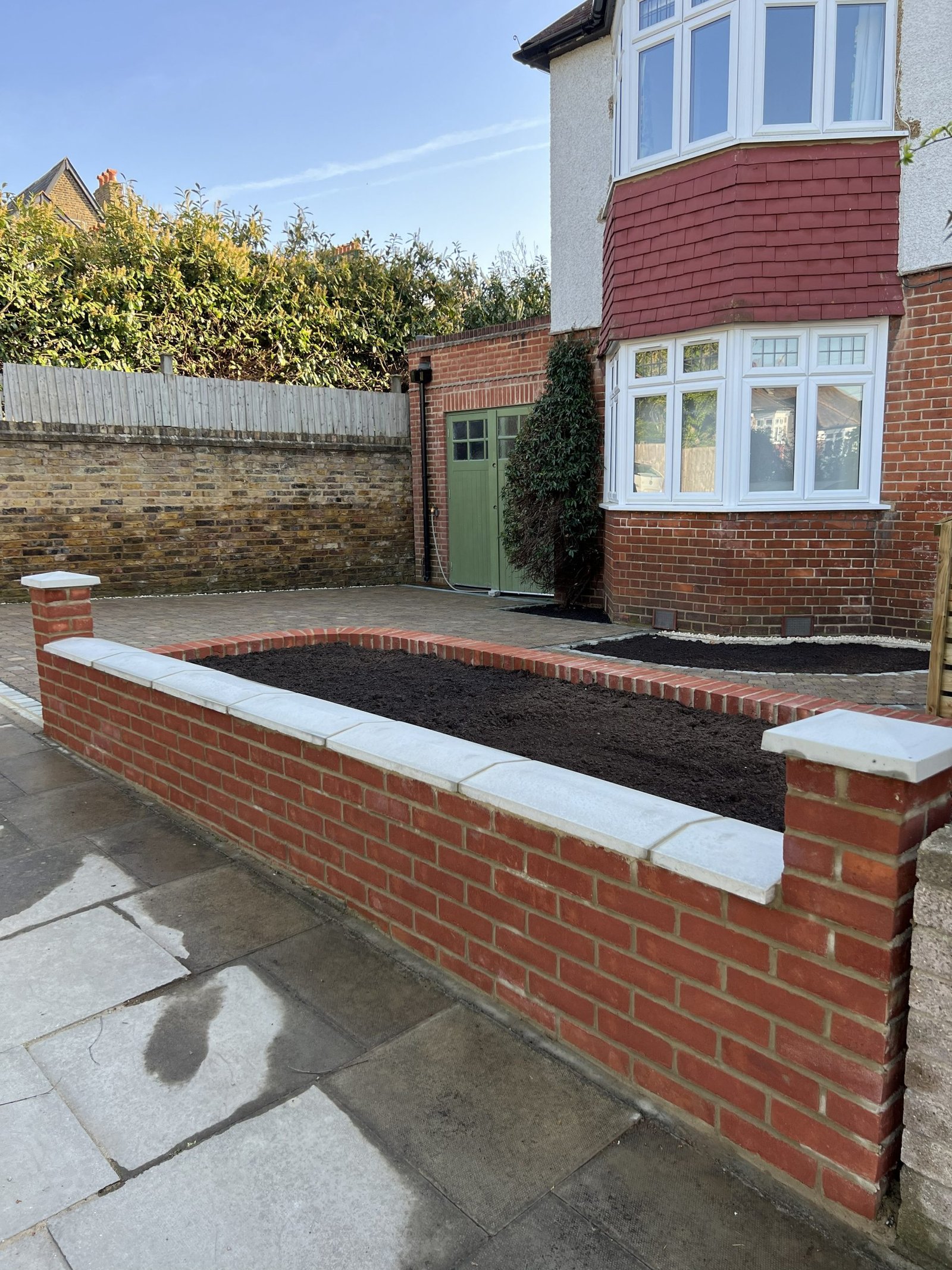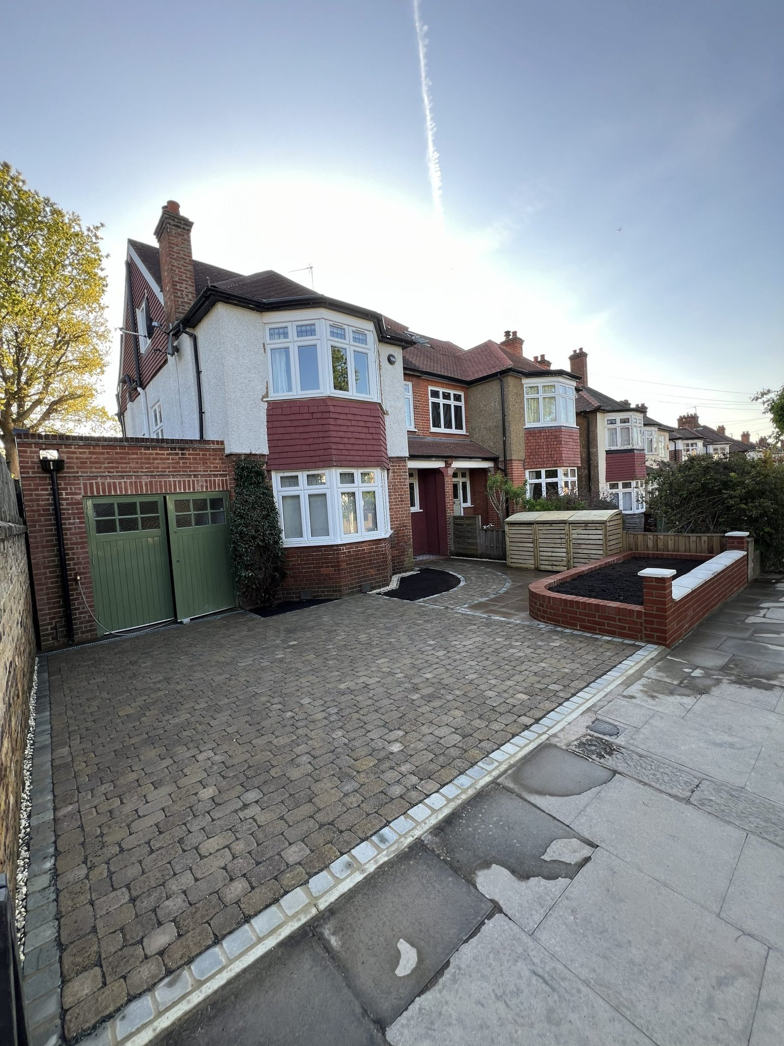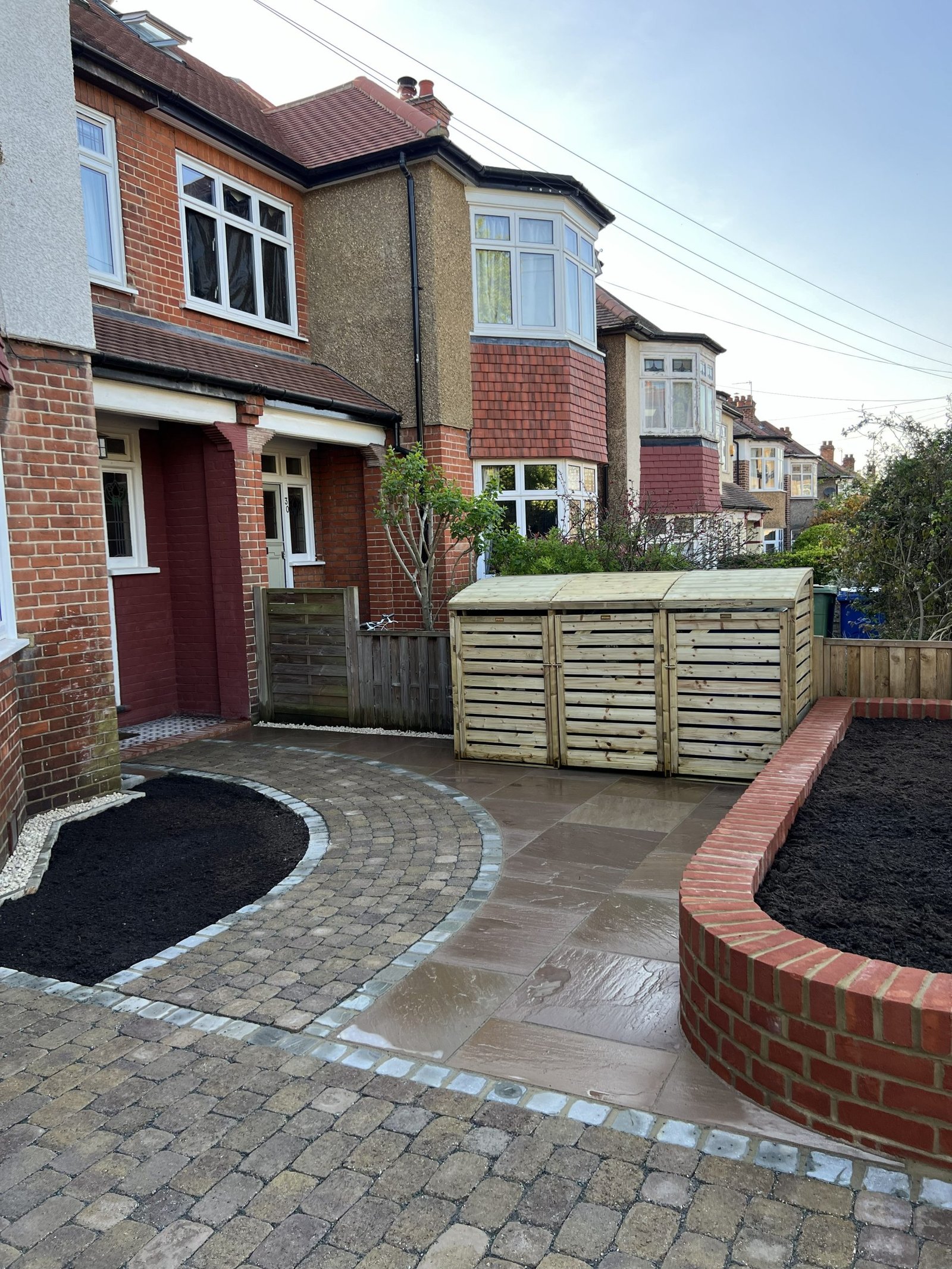 On this project our team began by installing a high quality permeable sub-base to ensure proper drainage, followed by elegant permeable block paving complemented with cobblestone edging for a refined look. To enhance both practicality and style, we built a custom bin shed set on its own beautifully laid sandstone paving base, creating a smooth and attractive transition from one area to the next. The project was completed with a raised brickwork flower bed, adding structure, charm, and a touch of greenery to finish off this remarkable transformation.